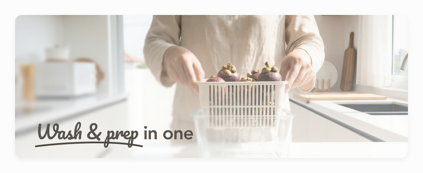- ALL-IN-ONE DESIGN: The removable colander basket lets you wash, drain, and store without switching containers.